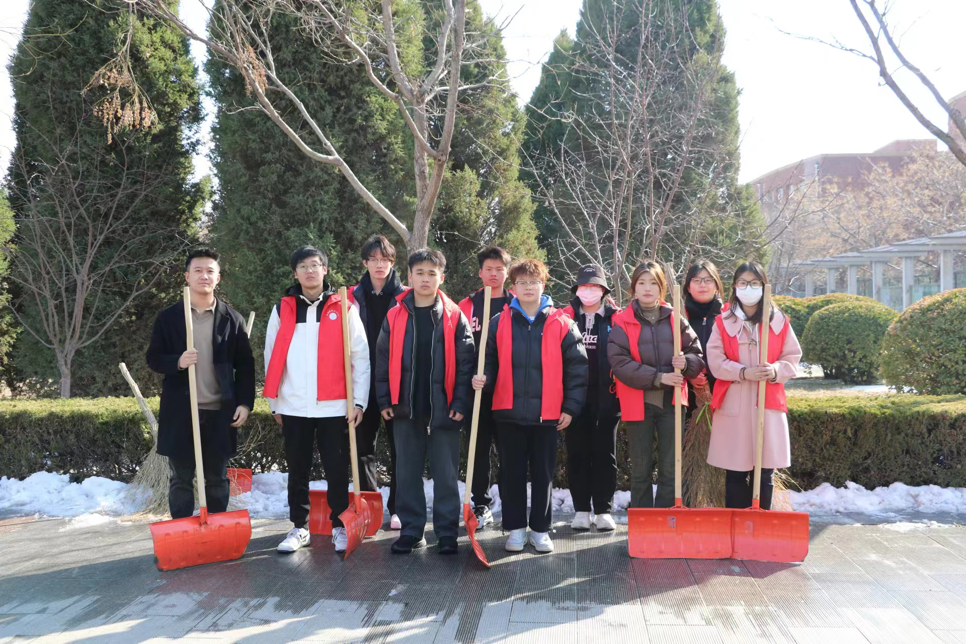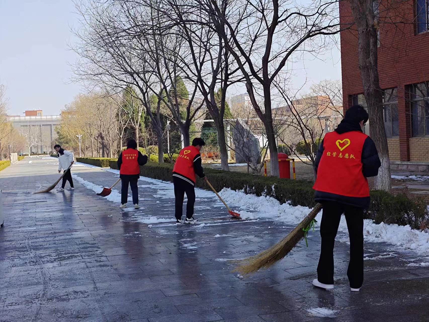 为畅通校园道路,服务师生返校开学,2月25日上午,申慱sunbet网站组织学生志愿者开展扫雪志愿服务活动。
