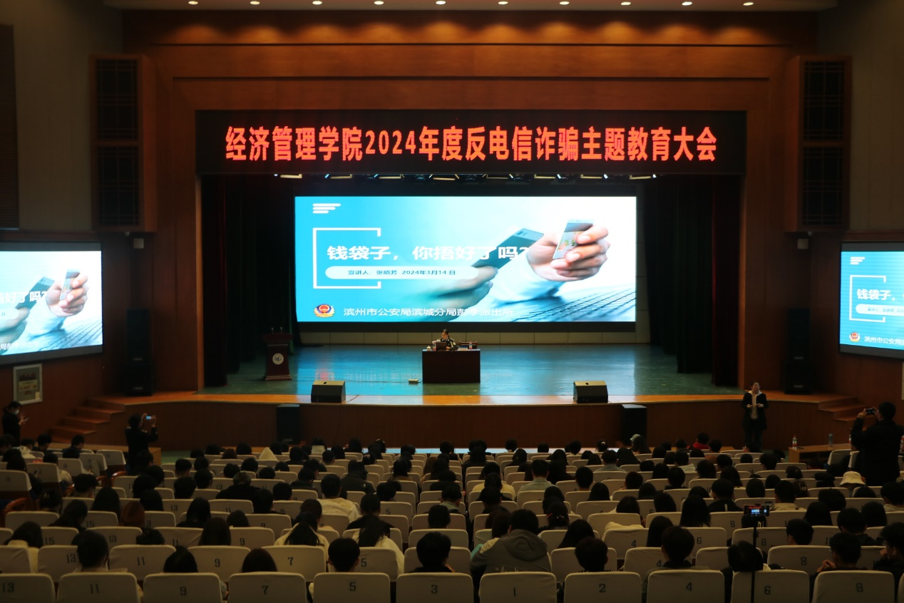 为进一步防范电信诈骗,提高学生安全意识,3月14日,申慱sunbet网站在学苑会堂召开2024年度反电信诈骗主题教育大会。经济管理学院党总支副书记苏成荣、正科级辅导员王胜、辅导员谭雨婷和部分学生参加此次会议。