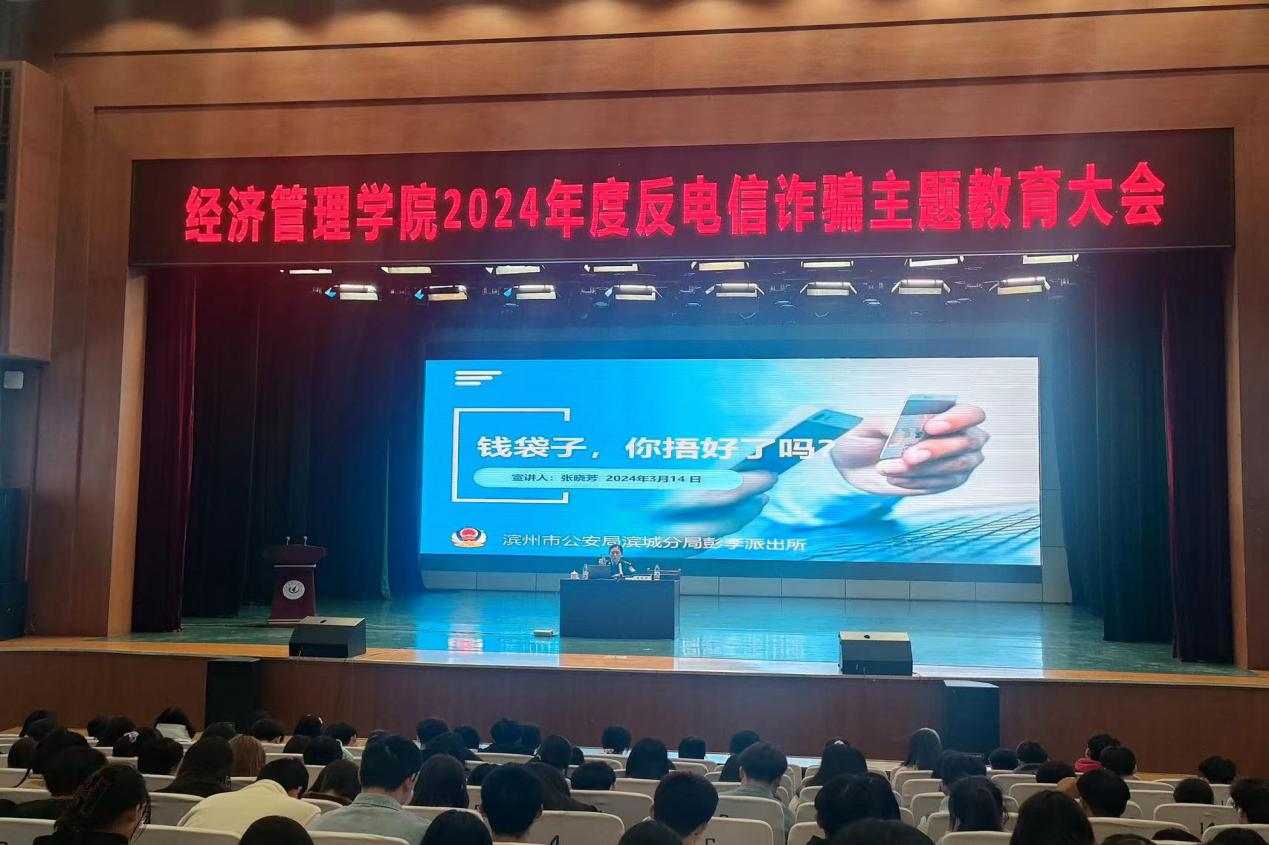 我们特邀彭李派出所驻校民警张晓芳、中国建设银行滨州分行个人金融部经理王云丽前来宣讲。会上,张晓芳警官梳理了今年以来相关电信诈骗案件的发案特点,告诫学生不要轻信任何中奖信息,更不要随意参与领取微信红包、刷单返利、网络贷款等活动,要主动学习反诈知识,提高防诈骗意识,自觉做到“不听、不信、不转账”,遇到可疑情况及时报警求助。王云丽经理围绕安全用卡、防范校园贷和征信问题展开讲解,回答了学生们热切关心的个人征信有关问题。